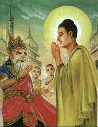 Ðức Phật biết Quốc vương có nhiều phước duyên về trước có thể hóa độ, liền hóa làm một vị Phạm Chí đến thăm. Vua rất mừng rỡ, làm lễ xong hỏi rằng: