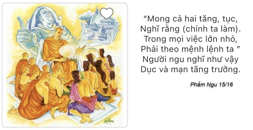- Người tu không nên nhượng bộ tính kiêu căng và tật xấu của mình, khi cho rằng “Chỗ ở này của ta, tu viện này của ta, cư sĩ nam này của ta, cư sĩ nữ này của ta”. Nếu nghĩ thế, tật xấu, tính kiêu mạn và tham dục khác sẽ tăng trưởng.
