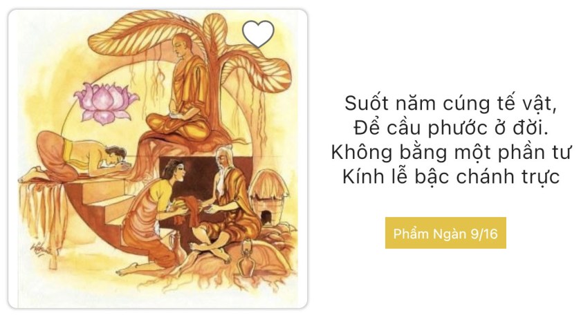 • Bà-la-môn, dù ông có dâng tế vật một năm, cũng không công đức bằng một phần tư công đức của một thiện tín bố thí cho dân chúng, hay người biết tôn kính đệ tử Ta.